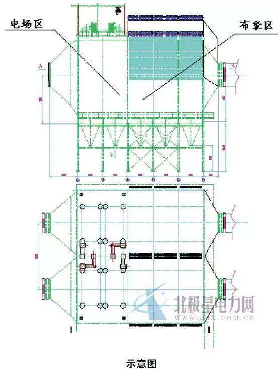4.3.1 改造后電袋復(fù)合式除塵器結(jié)構(gòu)(如示意圖)。